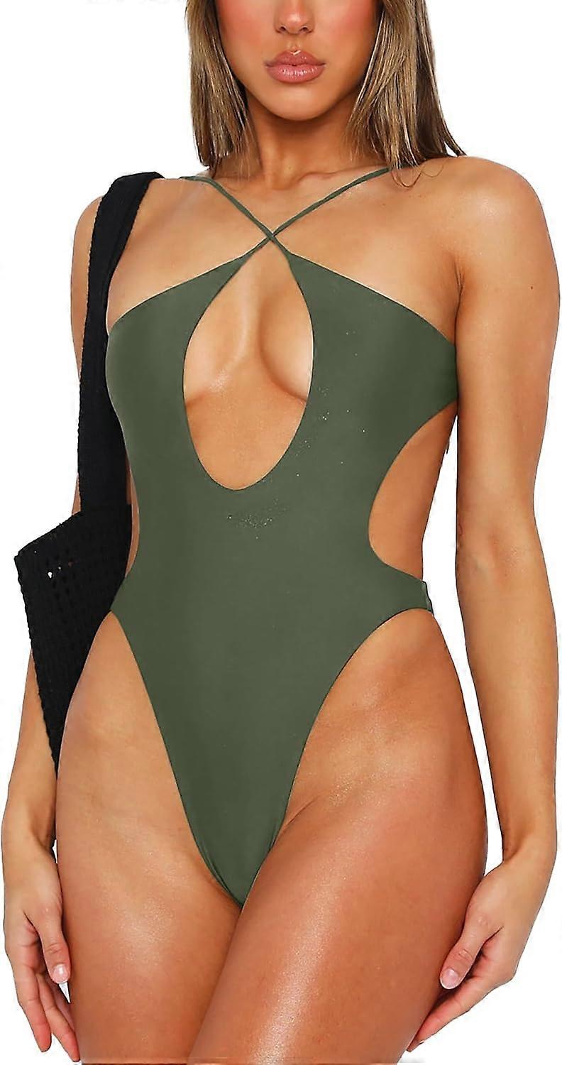 Women's Sexy Criss Cross Halter Bathing Suit Cut Out Backless Monokini Swimsuits One Piece
