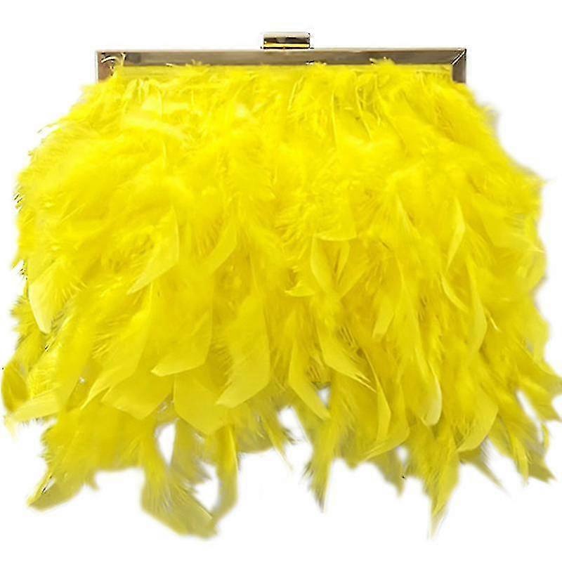 Women Evening Clutch Purse Feather Bag Handbags W/ 1 Removable Pearl Strap Chain & 1 Long Gold Chain