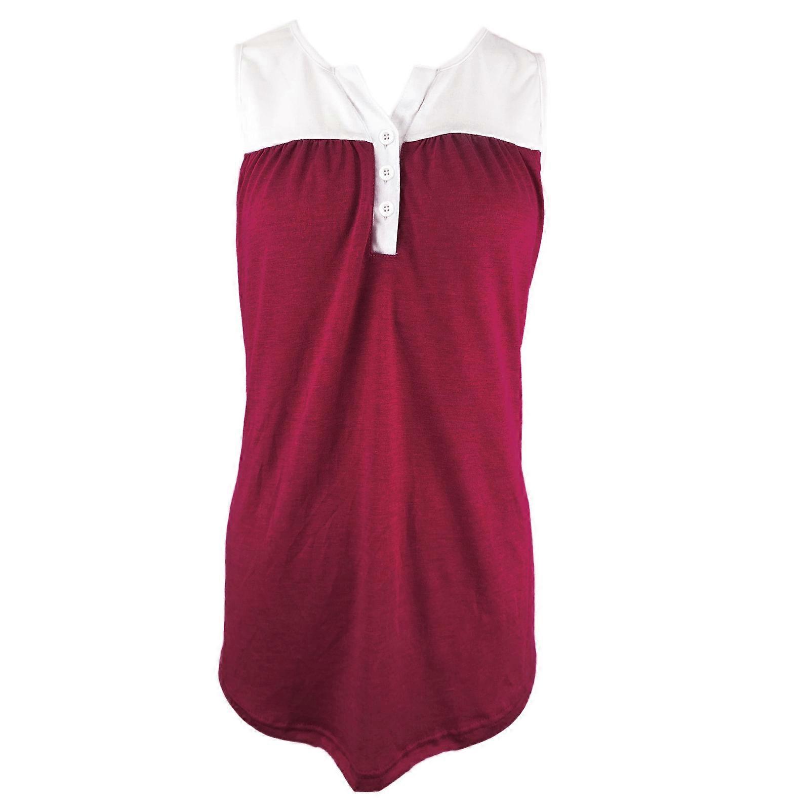 Womens Pleated V Neck Button Up Tank-Tops Fashionable Summer Sleeveless Blouses Tops Casual Loose Henley Shirts Gift Burgundy XL