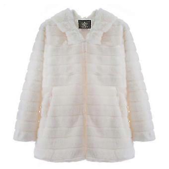 المرأة معطف الشتاء سترة فاخرة فو الفرو معطف سليم طويل الأكمام طوق معطف