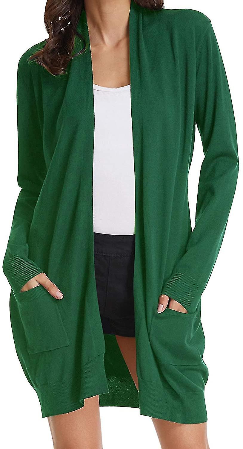 Women Open Front Cardigan Sweaters Pockets Long Sleeve Shrugs