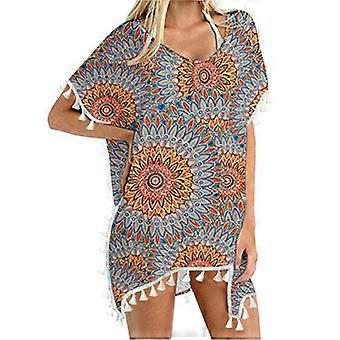 Women's Swimsuit Cover Ups Loose Pull Up Beach Dress With Tassels Casual Sleeve Midi Shirt Bathing