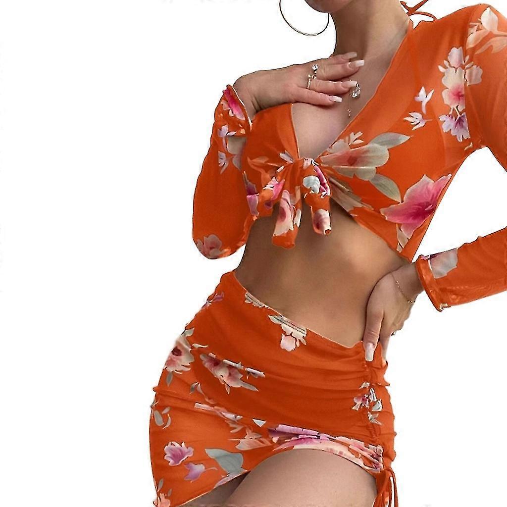 Womens 4 Pieces Swimsuit Ladies Halter Bikinis Set Floral Printed Bathing Suits