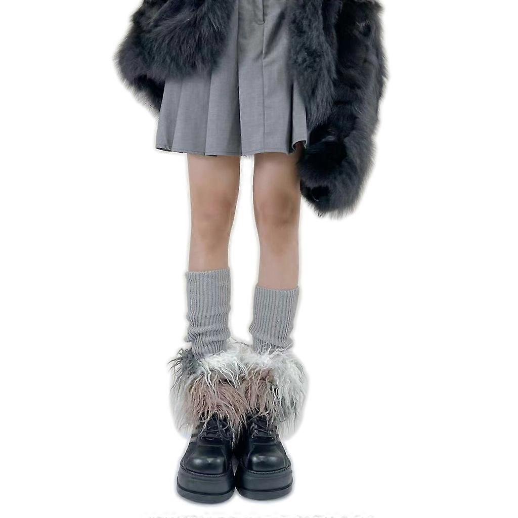 Women Harajuku Ribbed Knitted Boot Socks Colorful Furry Hem Stretch Leg Warmers