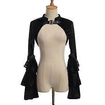 Women Steampunk Corset Jacket Medieval Victorian Retro Gothic Black Shrug Bolero Long Sleeve Mini Coat