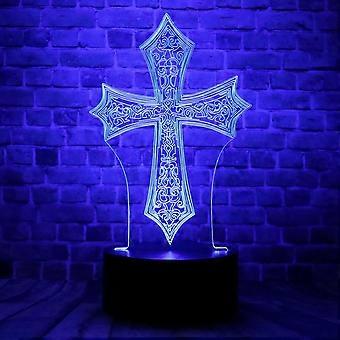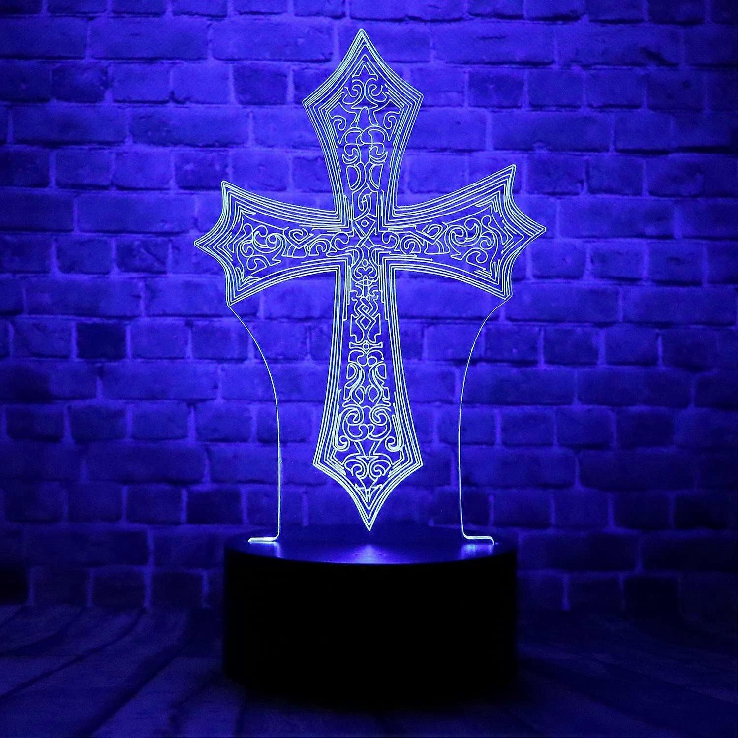 Christ Jesus Cross 3D Optical Illusion LED Bedroom Decor Sleep Night Light with Remote 7 Colors Table Lamp Birthday Christian Gift for Religious Women
