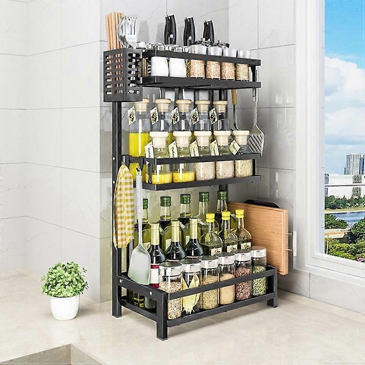 Kitchen Spice Rack Organizer Standing Seasoning Rack Jars Bottles Cans Shelf Knife Holder