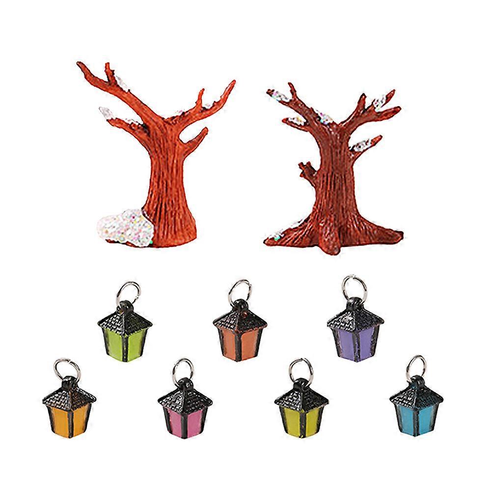 Landscape Scenery Trees Model Miniature Resin Trees with Mini Lights Decorative for DIY Lovers 1Set