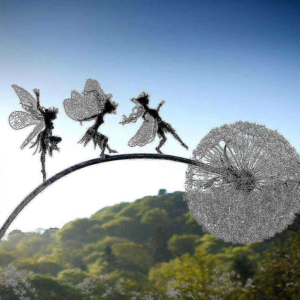 Fairy Garden Sculptures Stake Fairies And Dandelions Dance Together