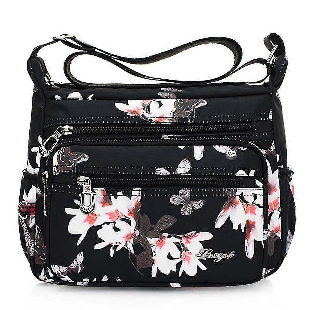 Nylon Floral Multi-Pocket Crossbody Purse Bags for Women Travel Shoulder Bag-Good