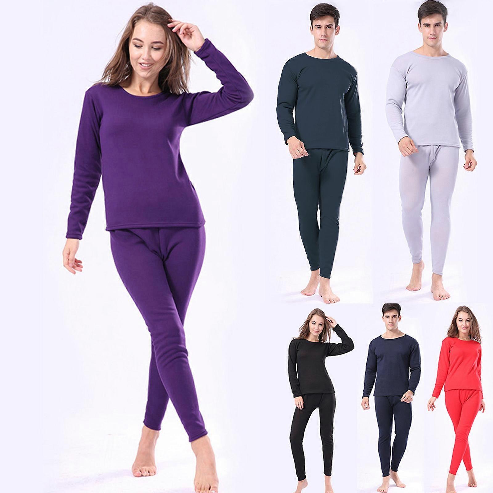Women Men Couple Winter Faux Fleece Lined Thermal Underwear Set O-Neck Pullover Top Bottom Long Johns Thicken Warm Base Layer Pajamas R XL