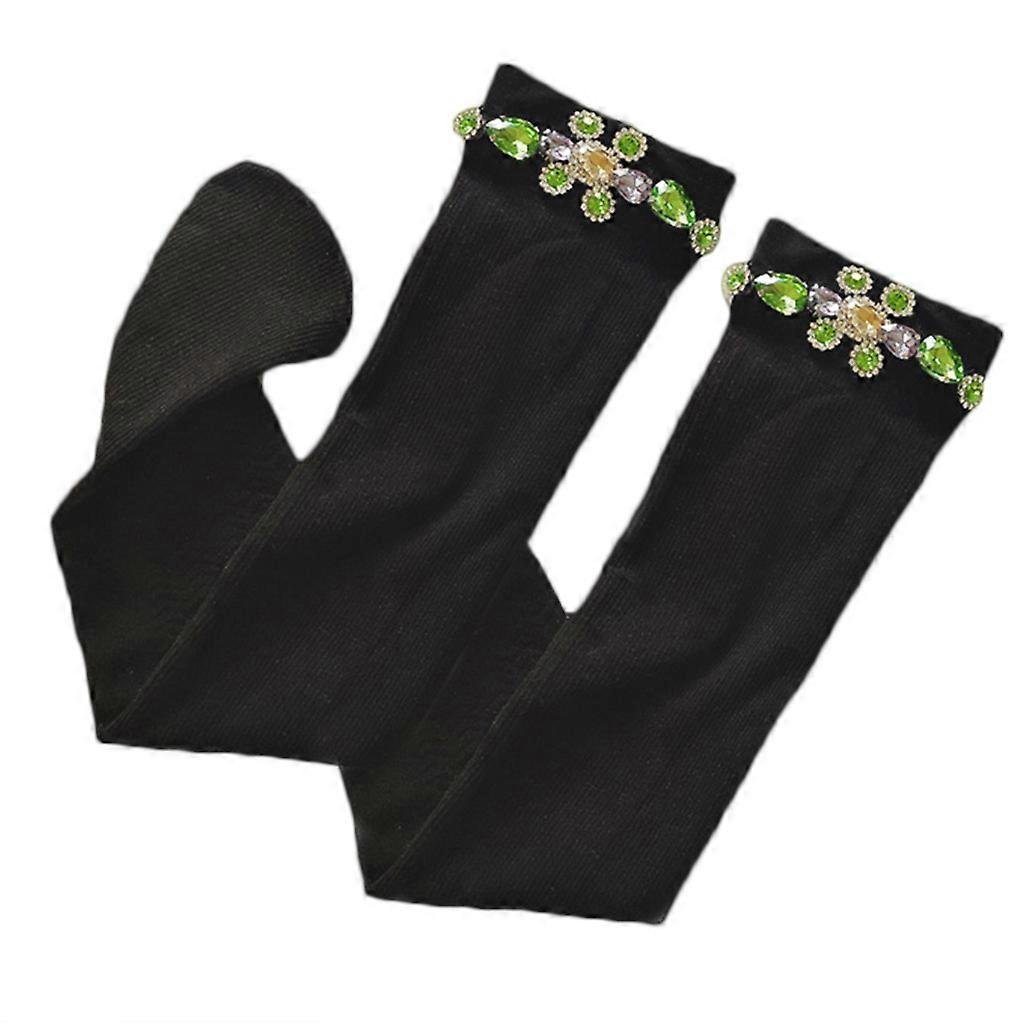 Women Summer Striped Stretch Knee High Socks Preppy Style Lolita Kawaii Colored Imitation Crystal Diamond Stockings