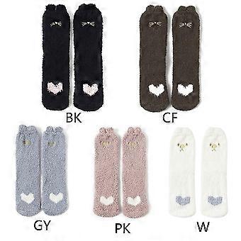 Women Girls Winter Soft Fuzzy 3d Animal Slipper Socks Cute For Cat Paw Ears Embroidery Coral Velvet Fluffy Plush Warm Sleeping Hosiery
