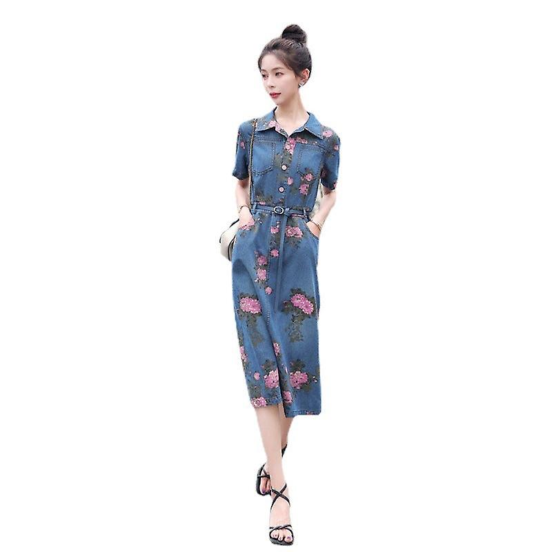 Women Girls Dress Trendy Fashionable Stylish Retro Mid-length Lightly Mature Over-the-knee Denim Shirt