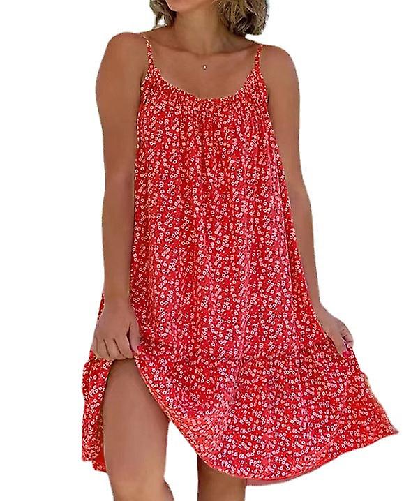 Women Girls Dress Comfortable High Waist Mid-length U-neck Large Swing Floral Strap