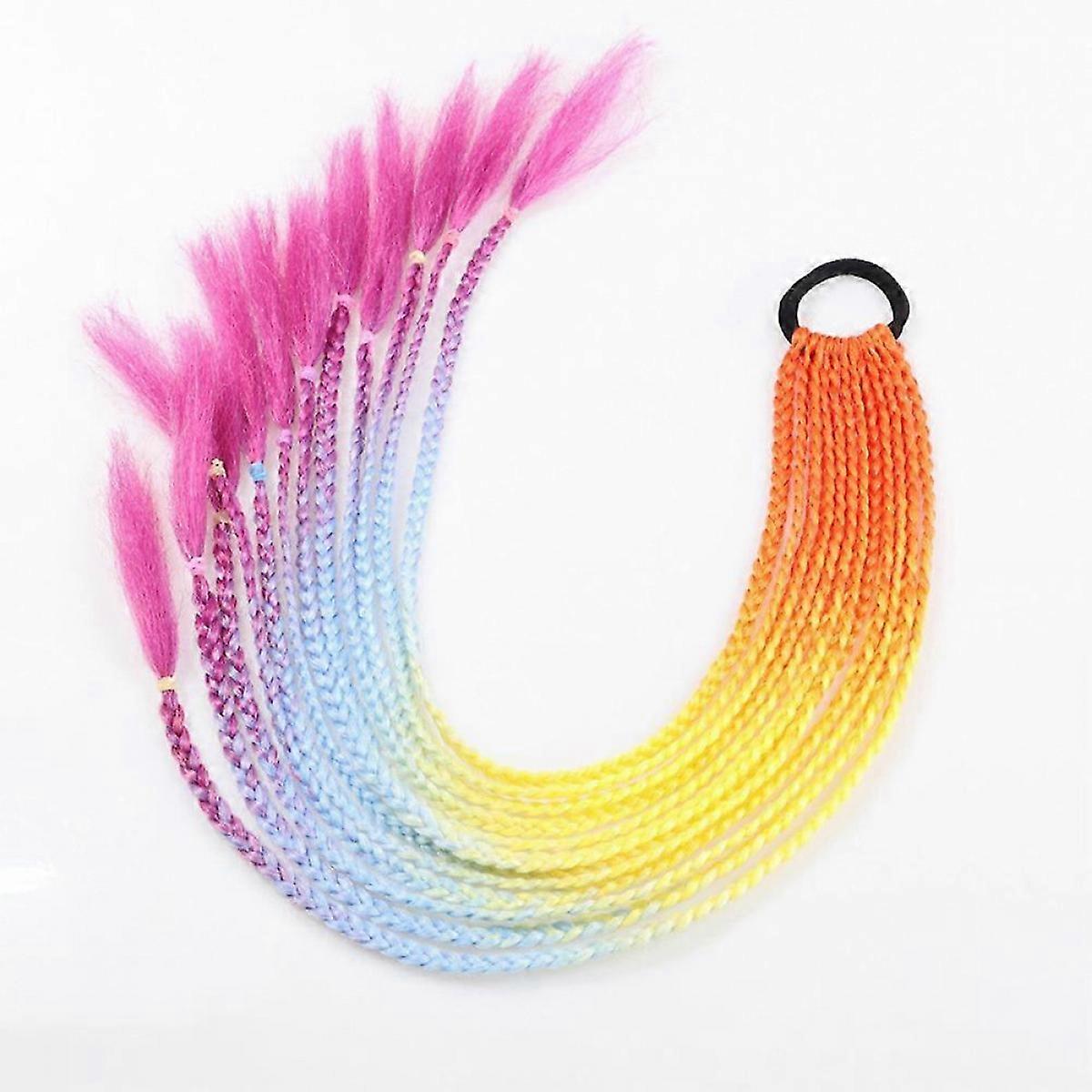 Women Girls Featured Wig Ponytail Ethnic Style Gradient Colorful Braided Wigs Hair Extension