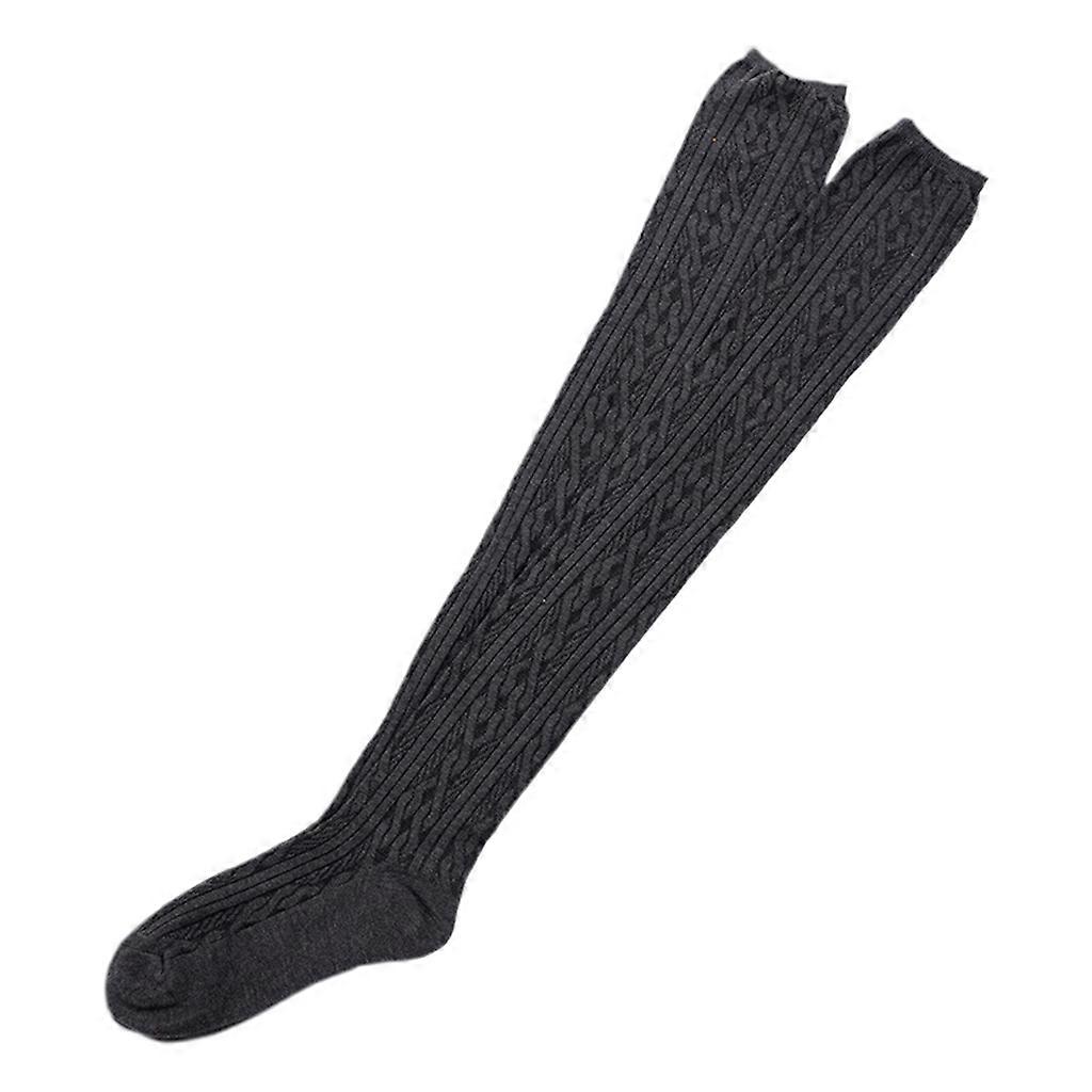 Japanese Women Girls Winter Cable Knitted Long Socks Solid Color Preppy Style Ov