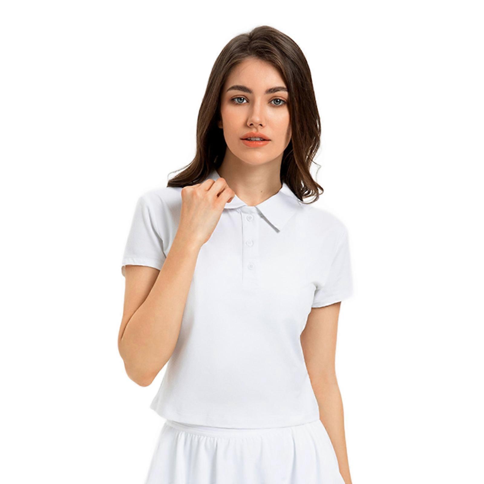 Women POLO-T-shirts Crop Short T-shirts Party Insgram Casual Tops Short Sleeves Office Wearing Clothing for Summer White 8