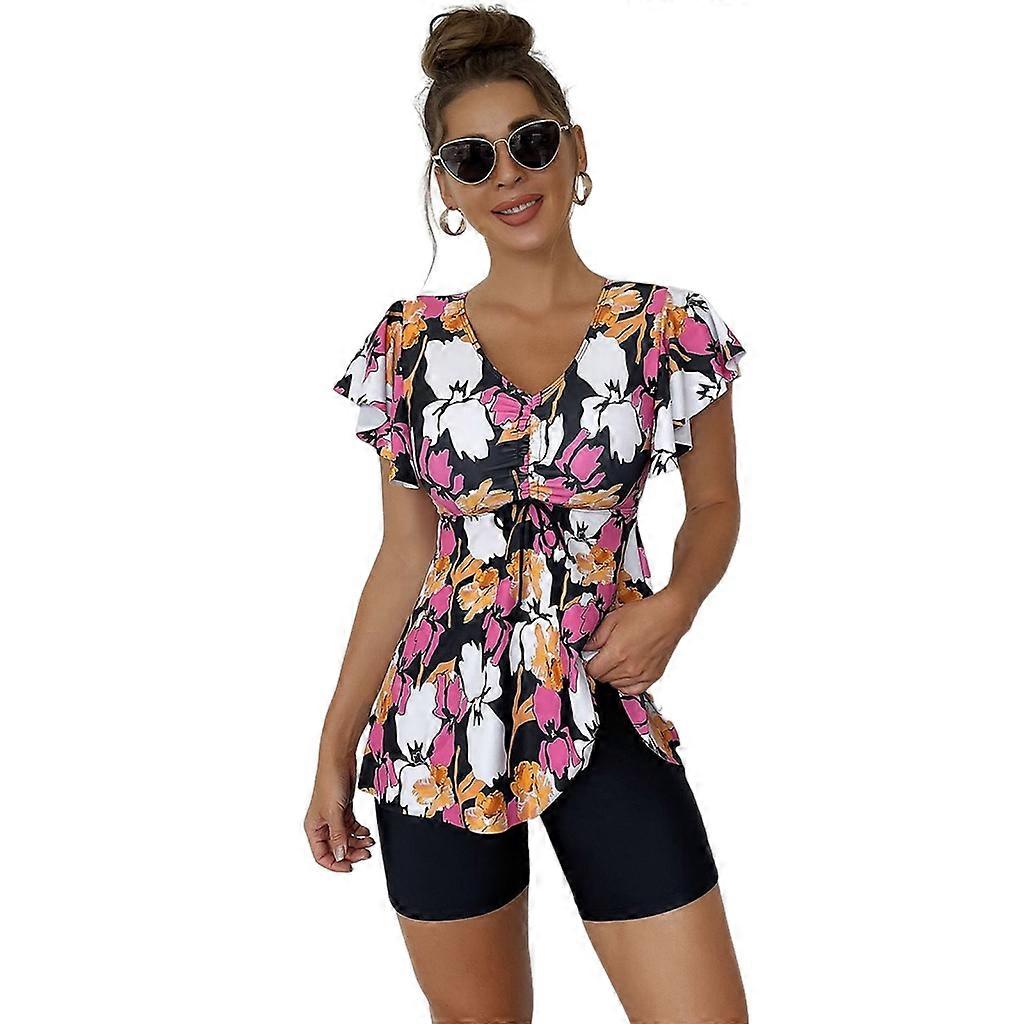 Women Printing Swimsuits Boyshorts Backless Swimsuit High Waist Lacing Swimwear