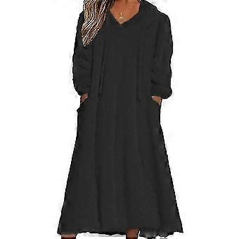 Women Fuzzy Fleece Midi Dress Fall Winter Warm Plush Dress Long Sleeve Hooded Drawstring Sweatshirt Dress with Pockets