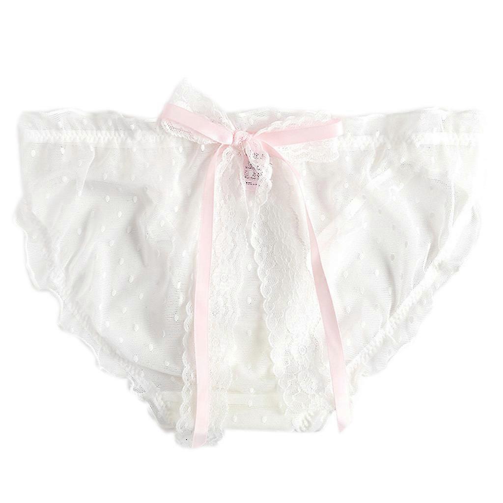 Women Sexy Hollow Mesh Ruffle Panties Polka Dot Lace Ribbon Bow Briefs Underwear