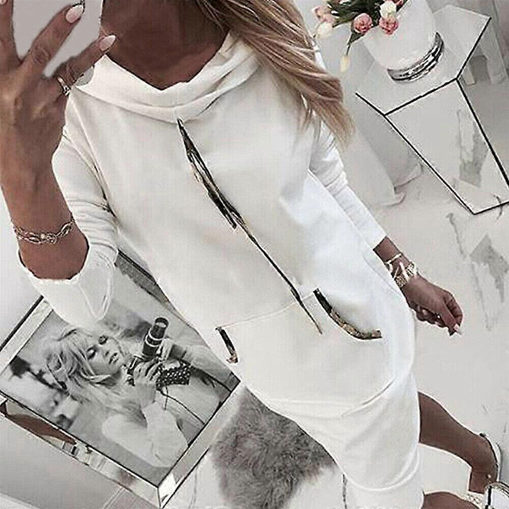 Women Hooded Fleece Sweatshirt Dress Long Sleeve Loose Hoodie Jumper Pullover