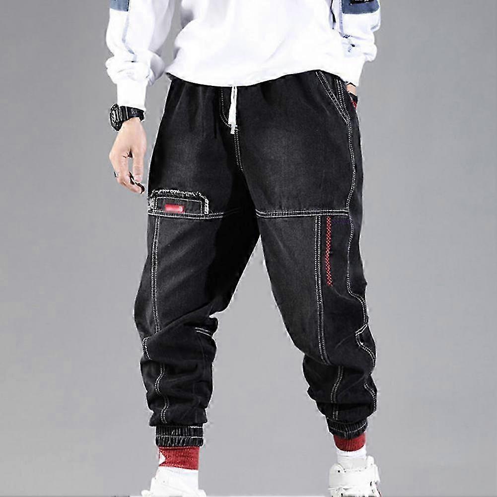 Korean Version of The Workwear Jeans Trend Light-coloured Hip-hop Loose Drawstring Youth Small Feet Harlan Trousers Men Plus Size