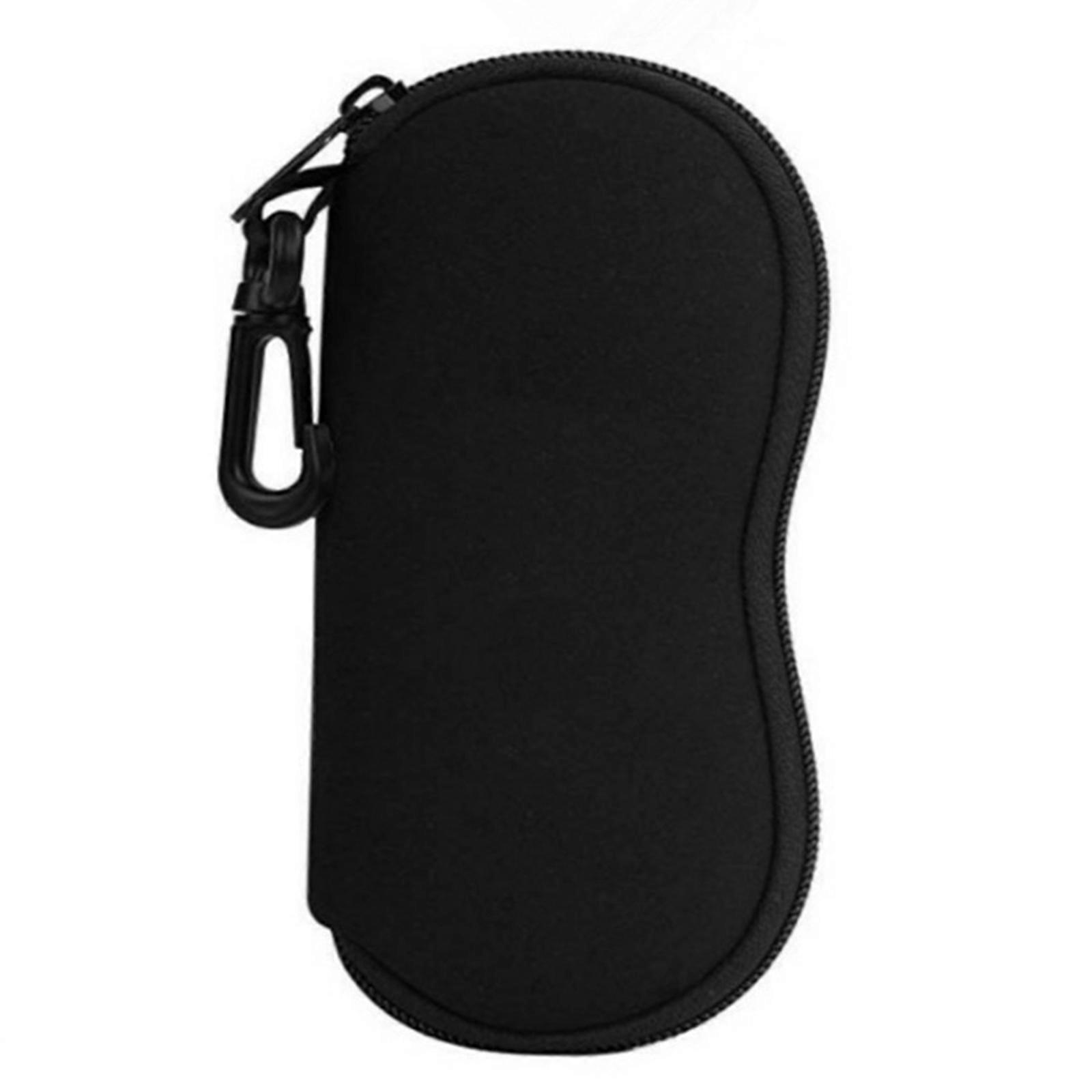 Sunglasses Case Soft Neoprene Pouch with Hanging Hook Belt Clip Glasses Storage Bag for Travel Zipper Closed Black