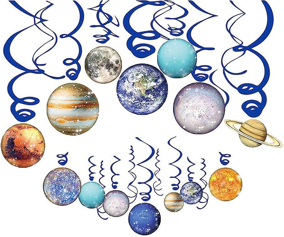 Solar System Hanging Swirls Party Decorations, Spiral Streamers For Outer Space Galaxy Planet Themed Party Supplies Foil Ceiling Ornaments For Kids Bi