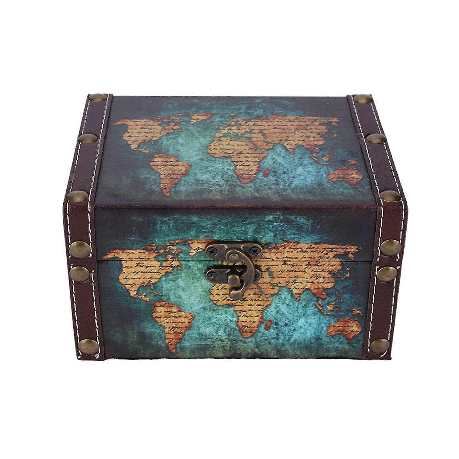 European Style Wooden Storage Box Vintage Jewelry Organizer Display Box Desktop Ornaments 2208A06Green Map