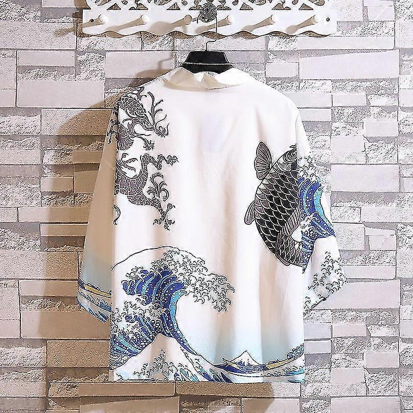 National Style Short-sleeved Men's Summer Loose Cardigan Clothes National Tide Thin Coat Retro Style Robe Couple Shirt Clothes#1
