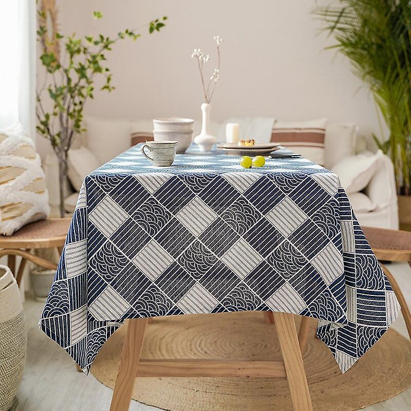 Japanese Style Cotton Linen Tablecloth Washable Rectangular Blue Sea Ripple Home Coffee Dining Table Fireplace Microwave Cover