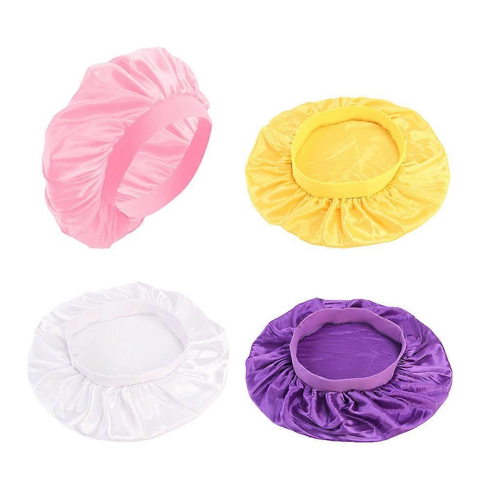 Sleeping Soft Cap Imitated Silk Dome No Skin Irritation Lady Yellow Purple White Pink 4Pcs