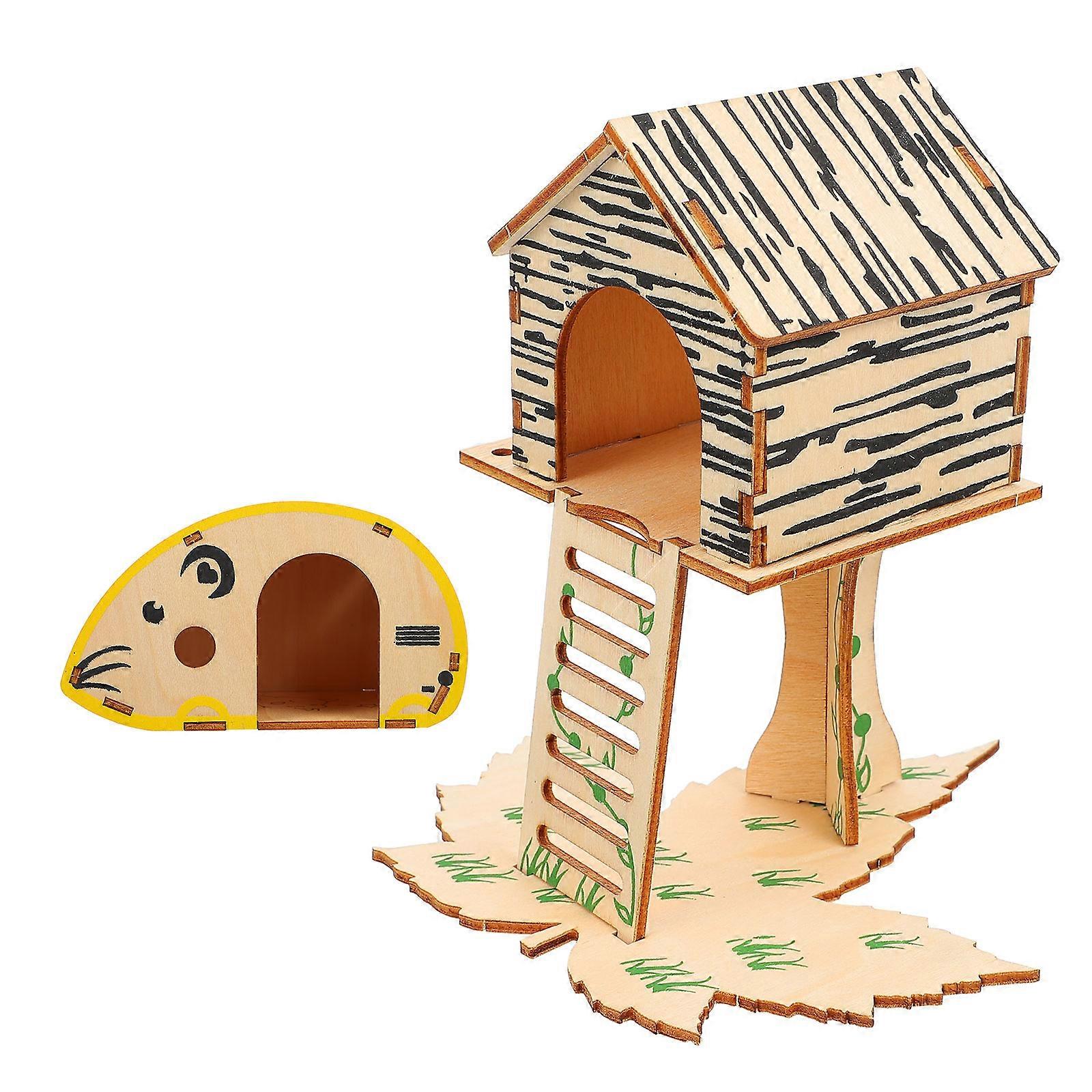 Hamster House Wooden Small Animal Play Toy for Pet 4Pcs Set