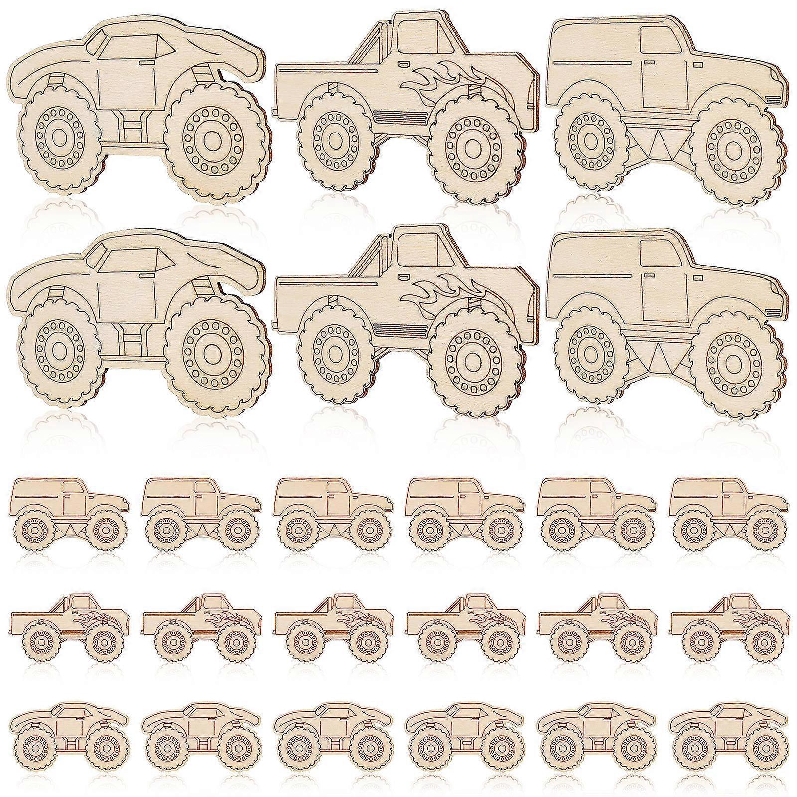 Monster Truck Cutouts Crafts Wooden Cars for Painting 30Pcs Set