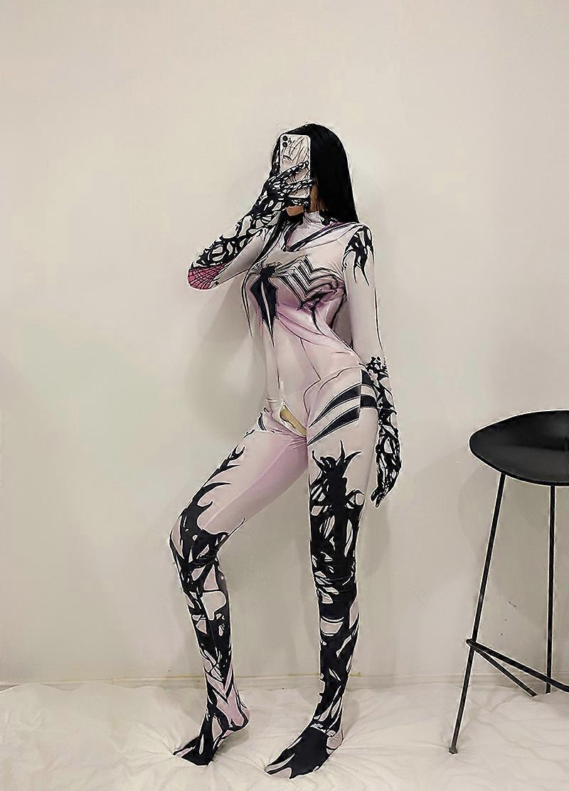 Pink Venom Zentai Suit Women Hooded Gewn Costume Sexy Bodysuit Cosplay Costume Onesie Women Anime Romper Jumpsuit