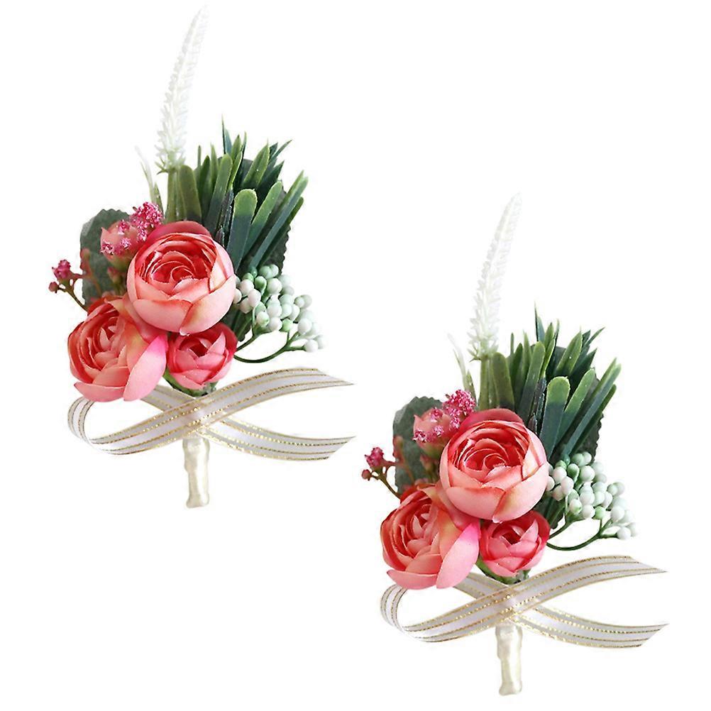 Pink Rose Corsage Artificial Wedding Boutonniere Pins for Bride, Groom, Bridesmaid, Party, Dance Banquet Prom Decorations