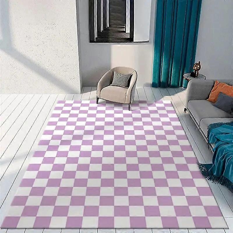 Pink Checkered Large Size Area Rug Plaid Decorative Living Room Carpet Washable Floor Mat For Home H