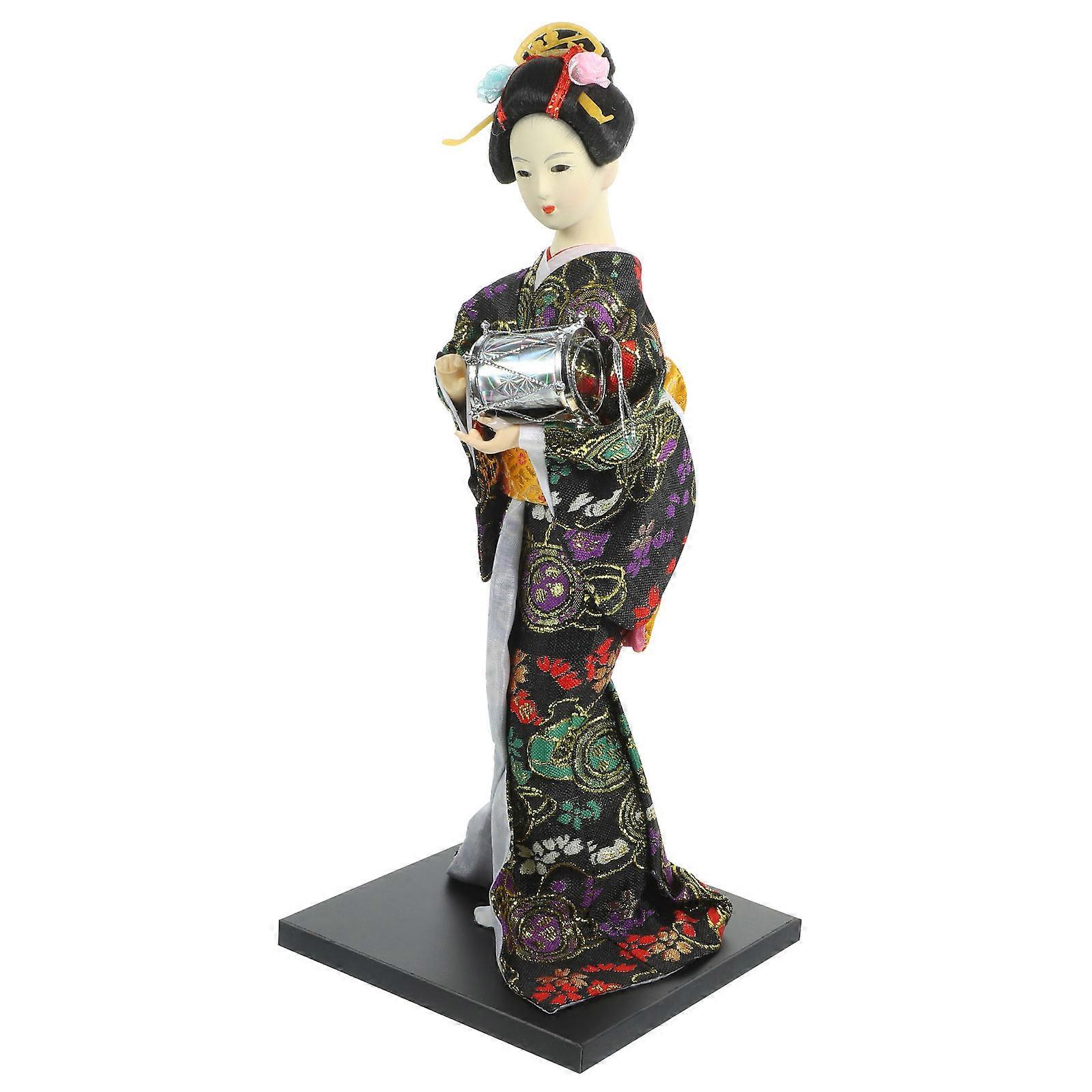 Japanese Geisha Humanoid Doll Ornament Elegant Craftsmanship Fine Figurine for Home Office Decor, Funny Birthday Gift with Random Drum and Apron
