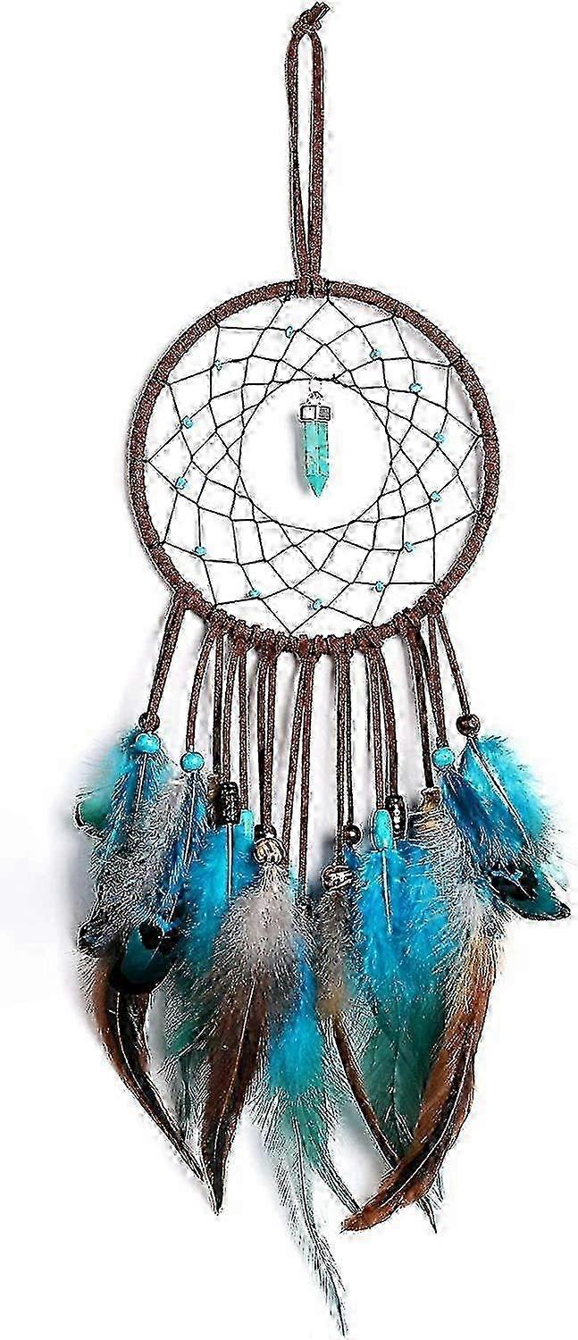 Handmade Blue Rattan Dreamcatcher with Feathers - Unique Wall Hanging Decor for Bohemian & Native American Style Home Decor