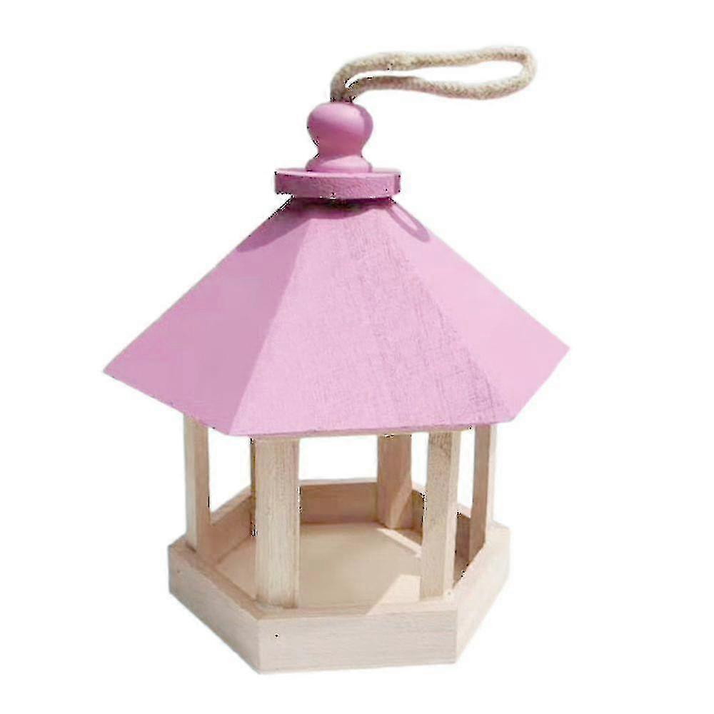 Handmade Wooden Bird Feeder Outside Hanging Birdfeeder Keep Bird Seed Sloping Roof Protects Birds