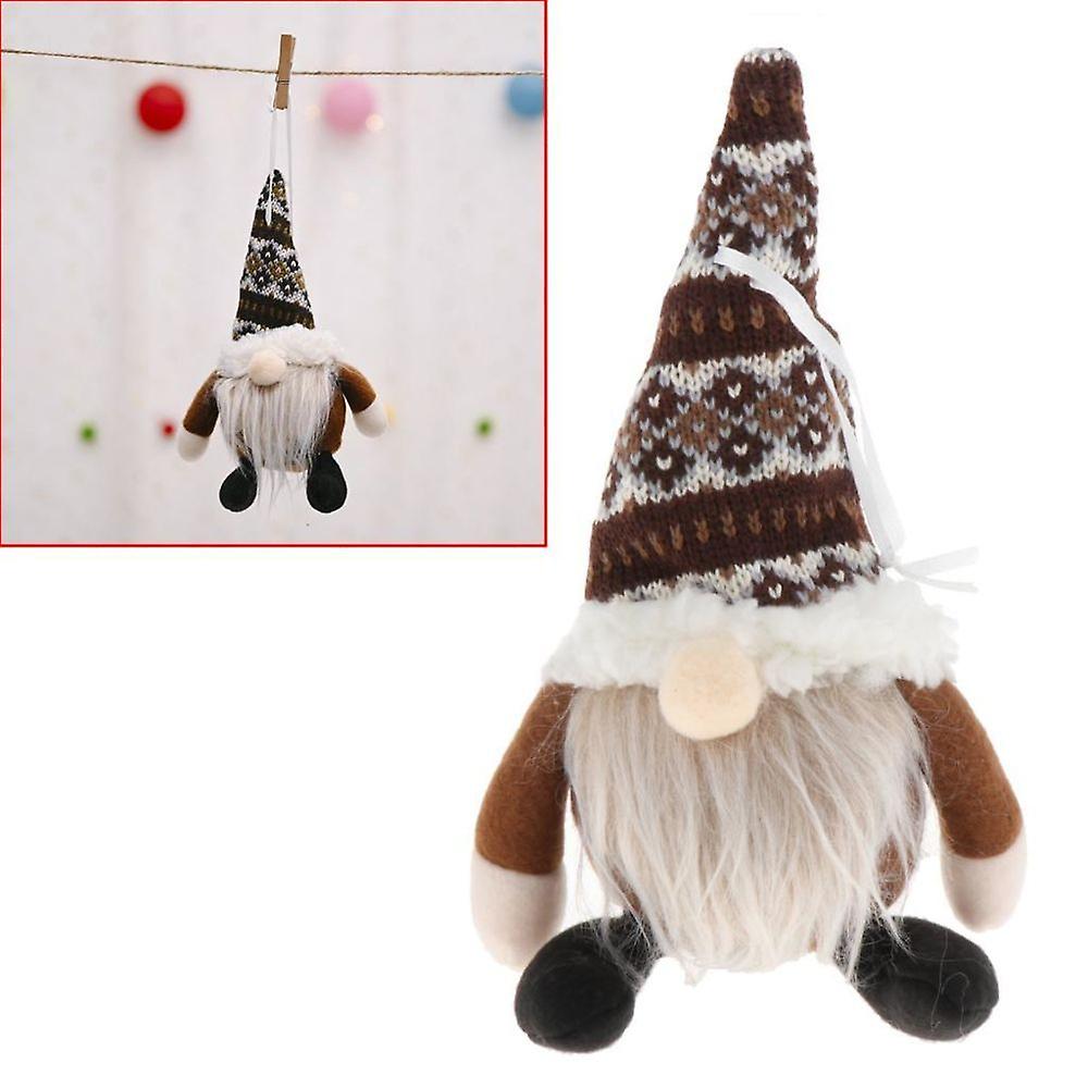 Handmade Santa Gnome Plush Toy For Christmas Tree Hanging Decor Brown