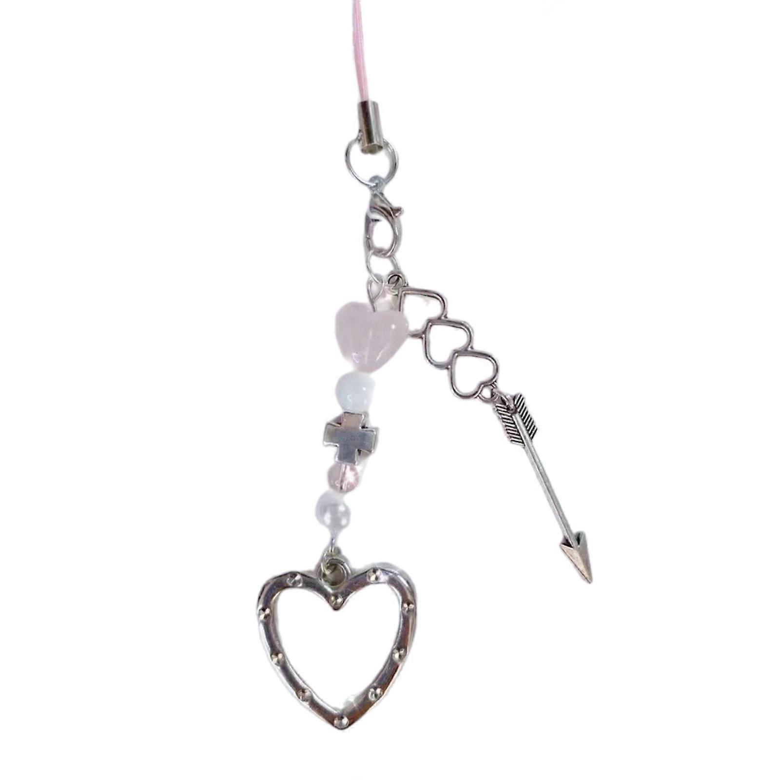 Handmade Beaded Phone Chain Sweet Bowknot Heart Cellphone Charm Stylish Keyring Pendant Keychain Women Bag Accessory
