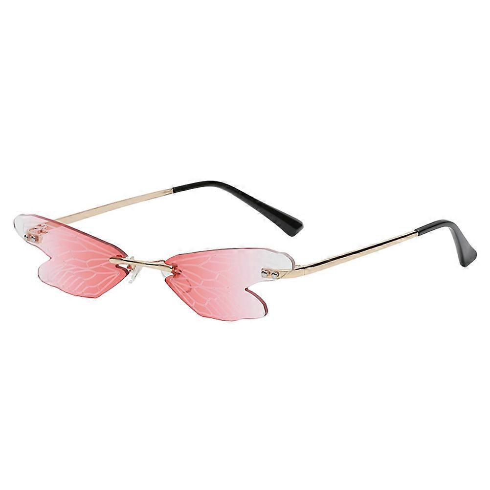 Dragonfly Wing Shape Sunglasses Party Eyewear Cosplay Accessory Pink Gradient Metal Pc Frameless 1Pc
