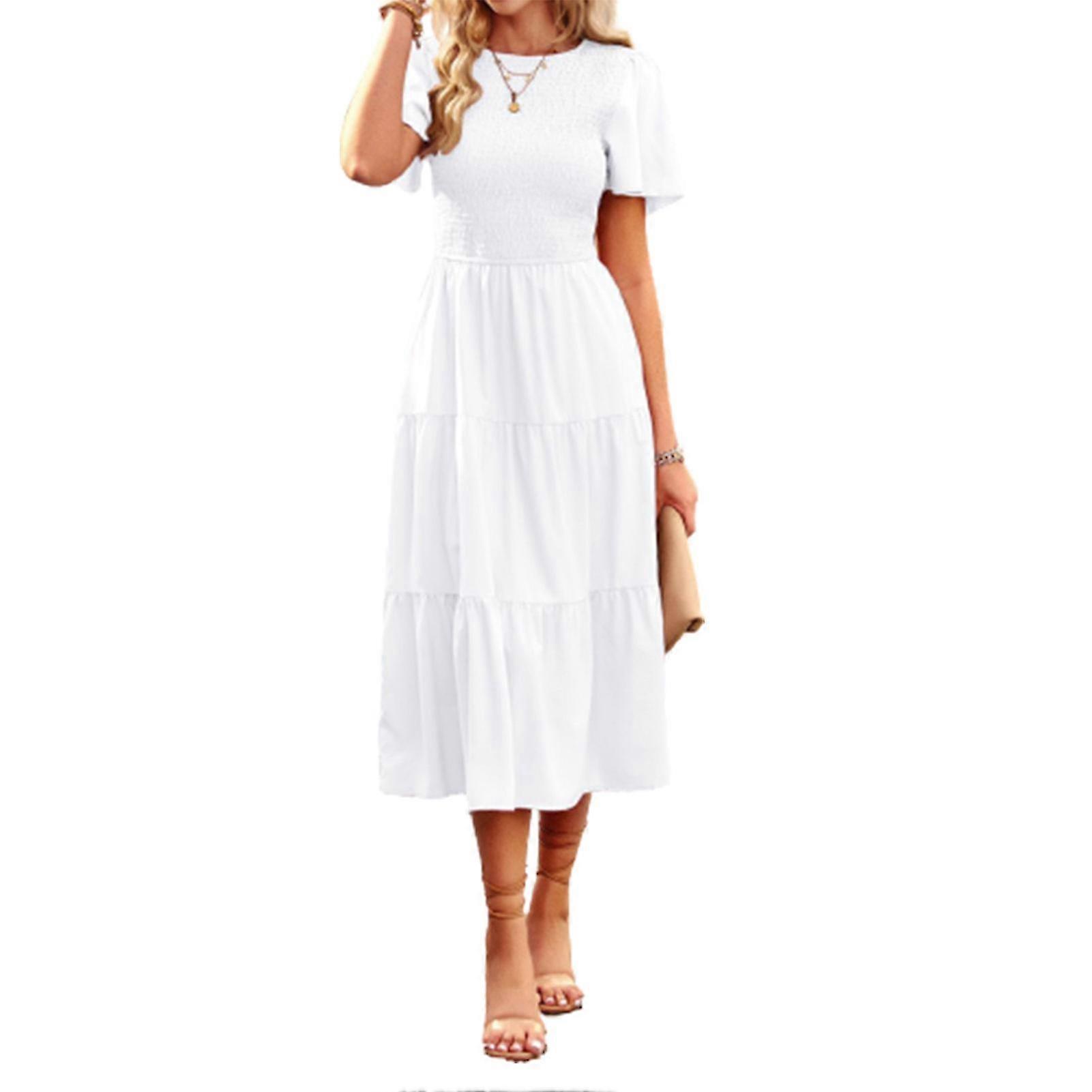 Woman Solid Color Dress Female Summer Slim Dress Gift For Christmas Birthday New Year