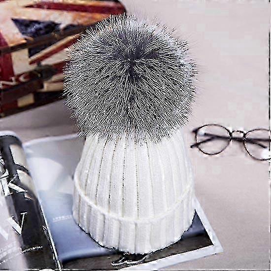 Detachable Faux Mink Silver Fox Fur Ball Cap Pom Poms Winter Hat for Women Girl 's Hat Knitted Beanies Cap