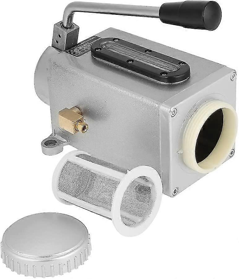 Engraving machine oil pump hand pressure oil pot pump manual lubrication pump double outlet lubrication pump Made of high quality metal material, wear-resistant and corrosion-resistant. Pulling the handle by hand, the plunger is pushed and the oil in the cylinder is removed. Loosen it and the plunger absorbs the oil under the action of the spring. The product is made of high quality seal, so it is not easy to leak. Color: Silver Size. Product List: 1*Hand pressure oil jug pump