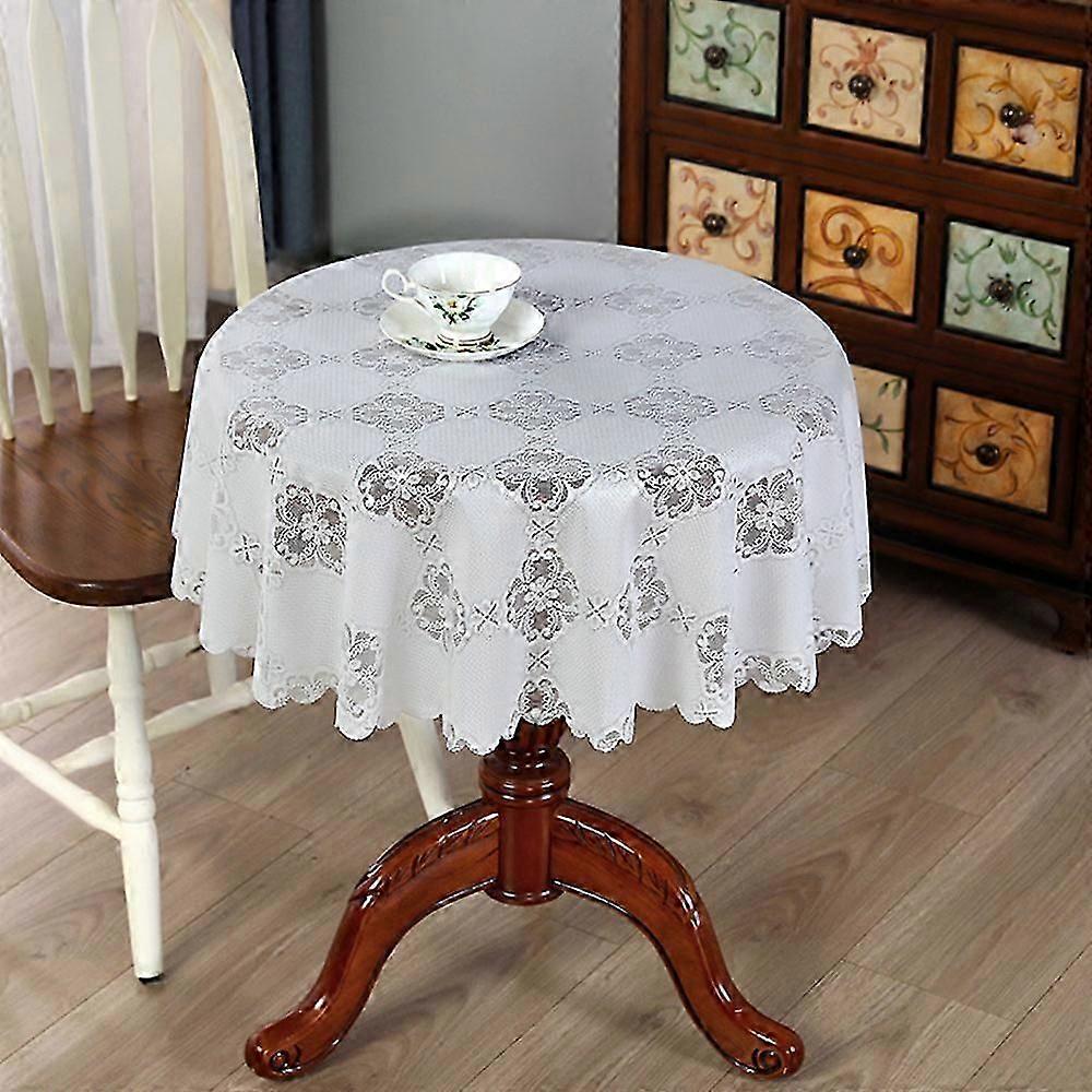 White Color Round Lace Table Cloth Stylish Tabletop Decorative Covering for Study Room Home [jkw]