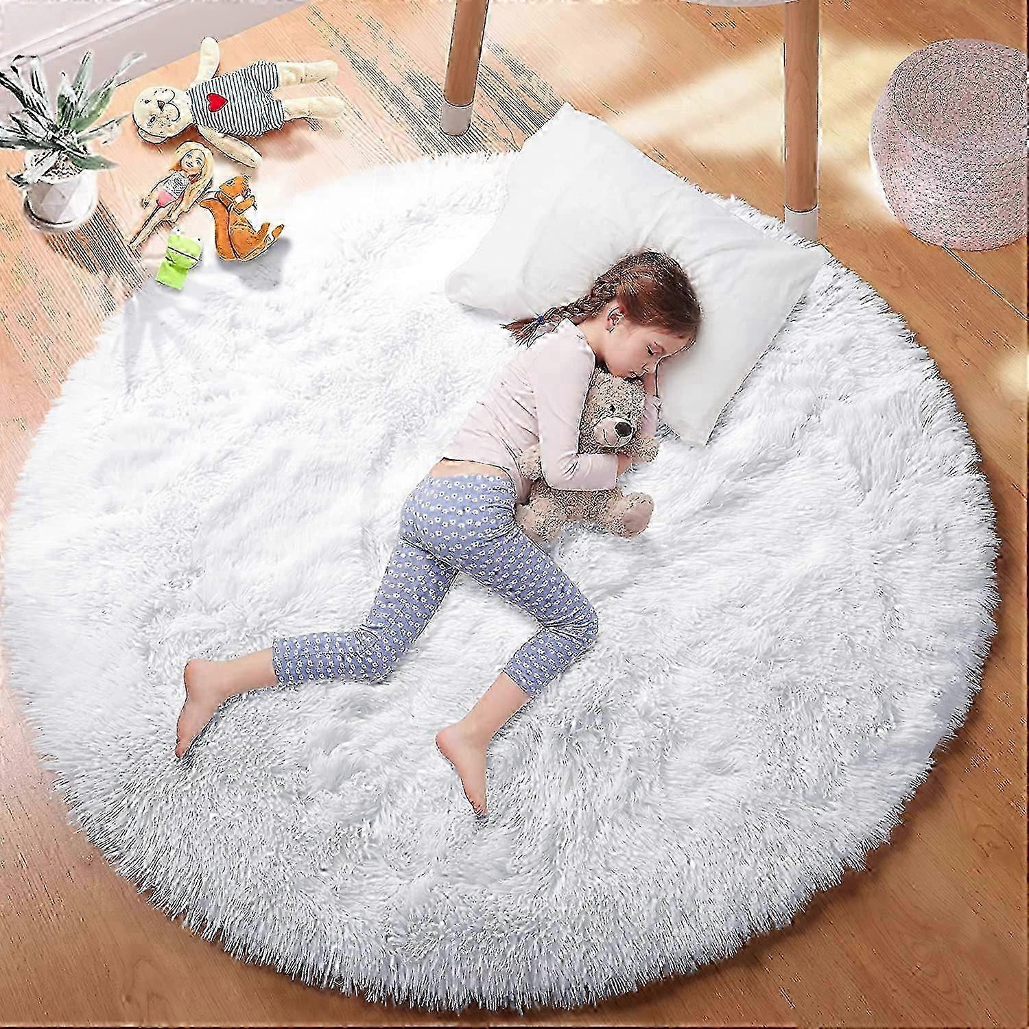 White Fluffy Round Rug Carpets for Living Room Soft Teen Girls Room Rug Nursery Bedroom Kid Furry Mat Plush Room Decor for Baby