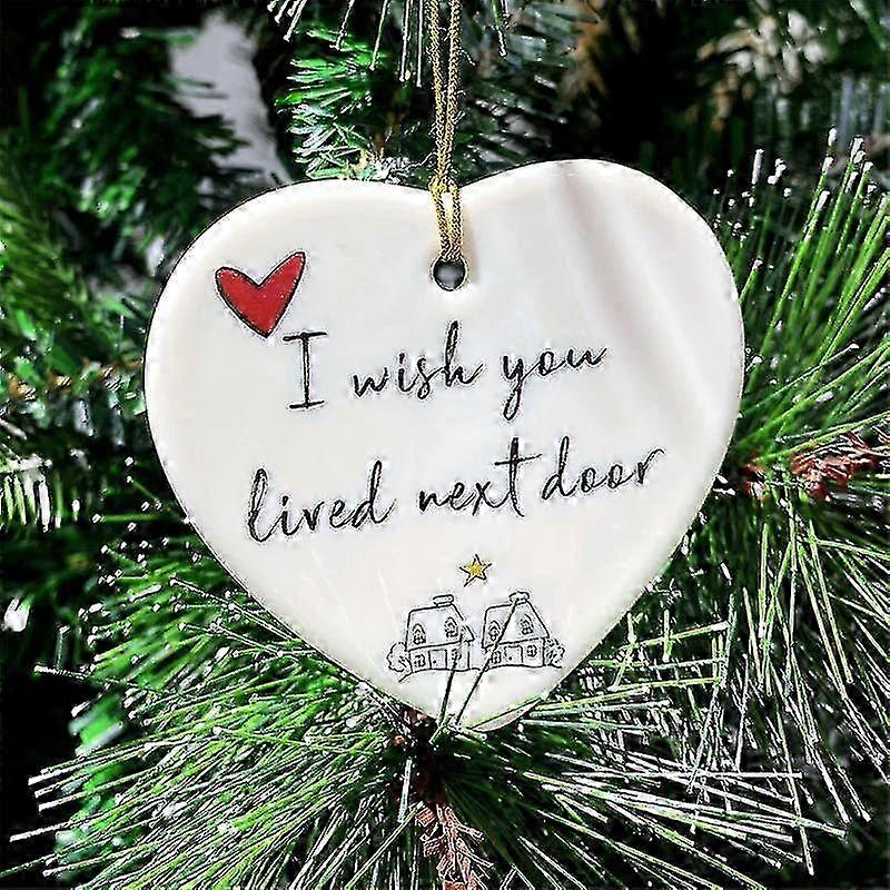 Its Such A Small Little Gift But Shows A A Huge Amount Of Care For You Loved One! I Wish You Lived Next Door Heart Ornament A Ceramic Heart To Show That Someone Special How Much You Miss Being With Them, Especially This Time Of Year. Whether It Is A Family Member, A Friend Or Someone Who Means A Lot To You It Will Hang Proudly On The Recipients Christmas Tree For Years. We All Have Those People Who We Wish Lived Next Door, Show Them.